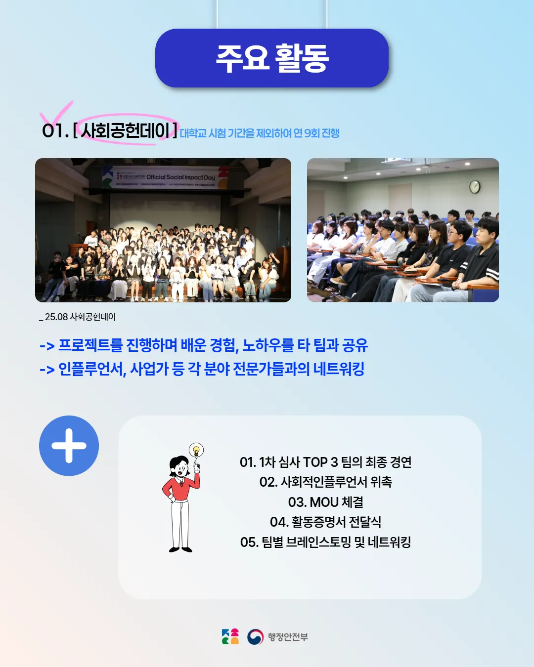 1. 사회공헌데이 우승팀 포상금 제도 및 물품지원금 100만원 지원 기회
