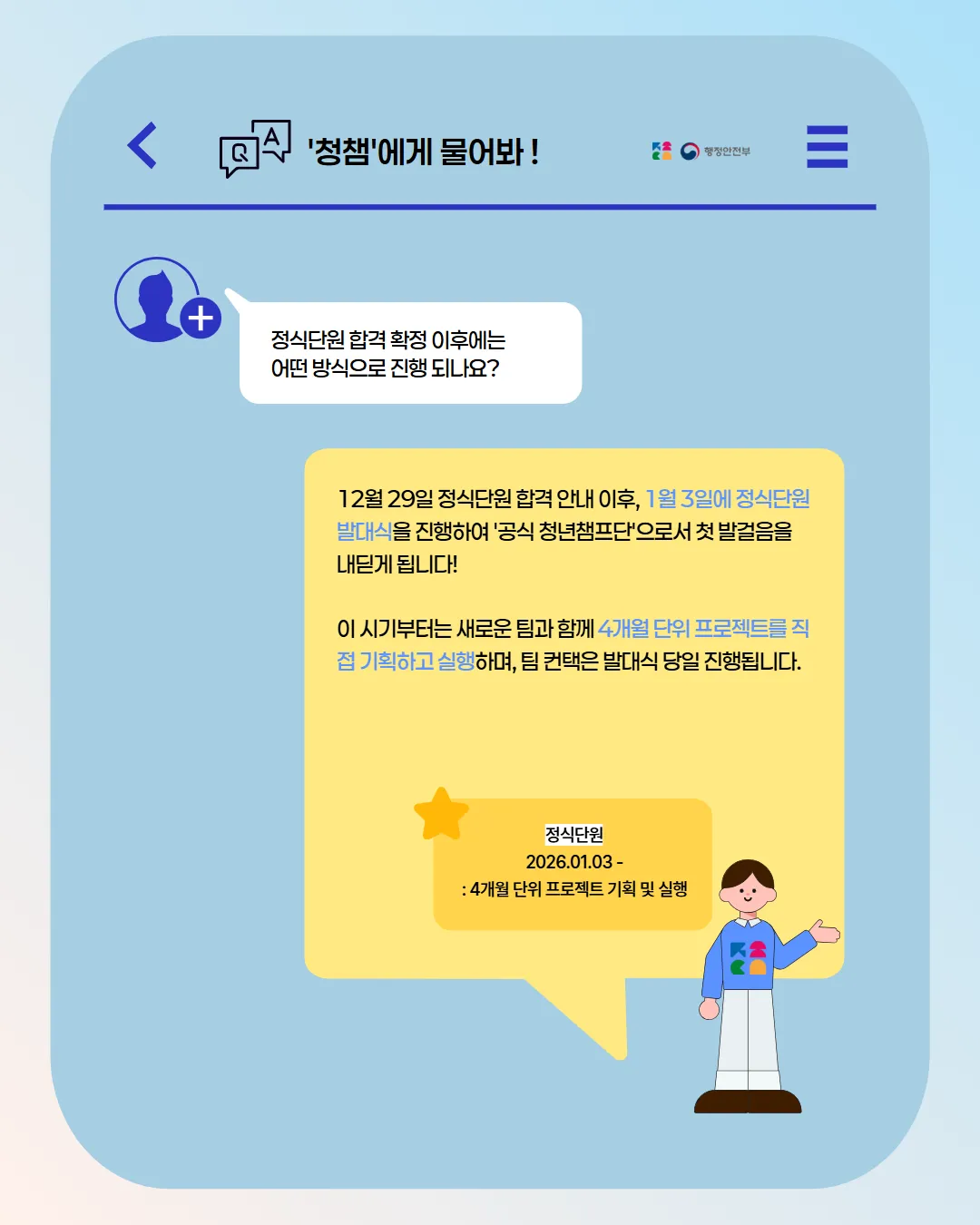 - 정식 단원 발대식: 1/3(토) 13시30분 [필참]