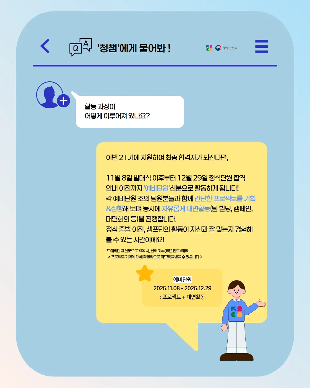 - 예비 단원 합격자 발표: 10/29(수)