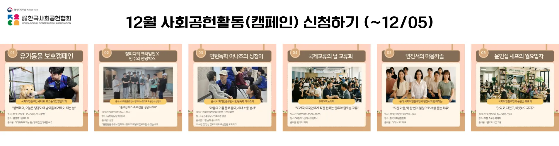 ![[~12/05] 12월 사회공헌활동 신청하기](/uploads/community/banner/20210517/2343c55c-cf7f-4e77-a573-8ab80cbf96e0.jpg)