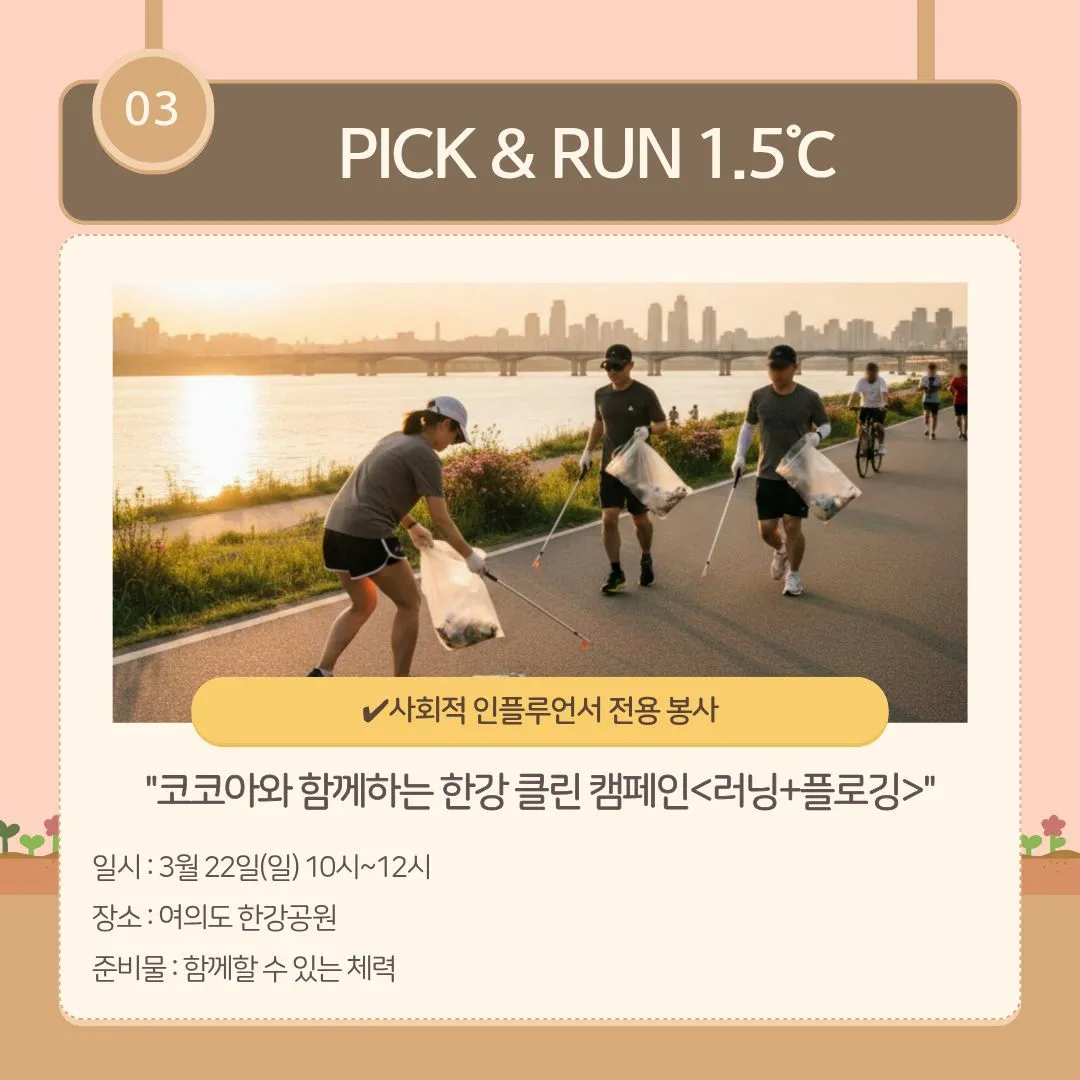 캠페인 이름: 코코아와 함께 Pick & Run 1.5℃ - 한강 클린 캠페인