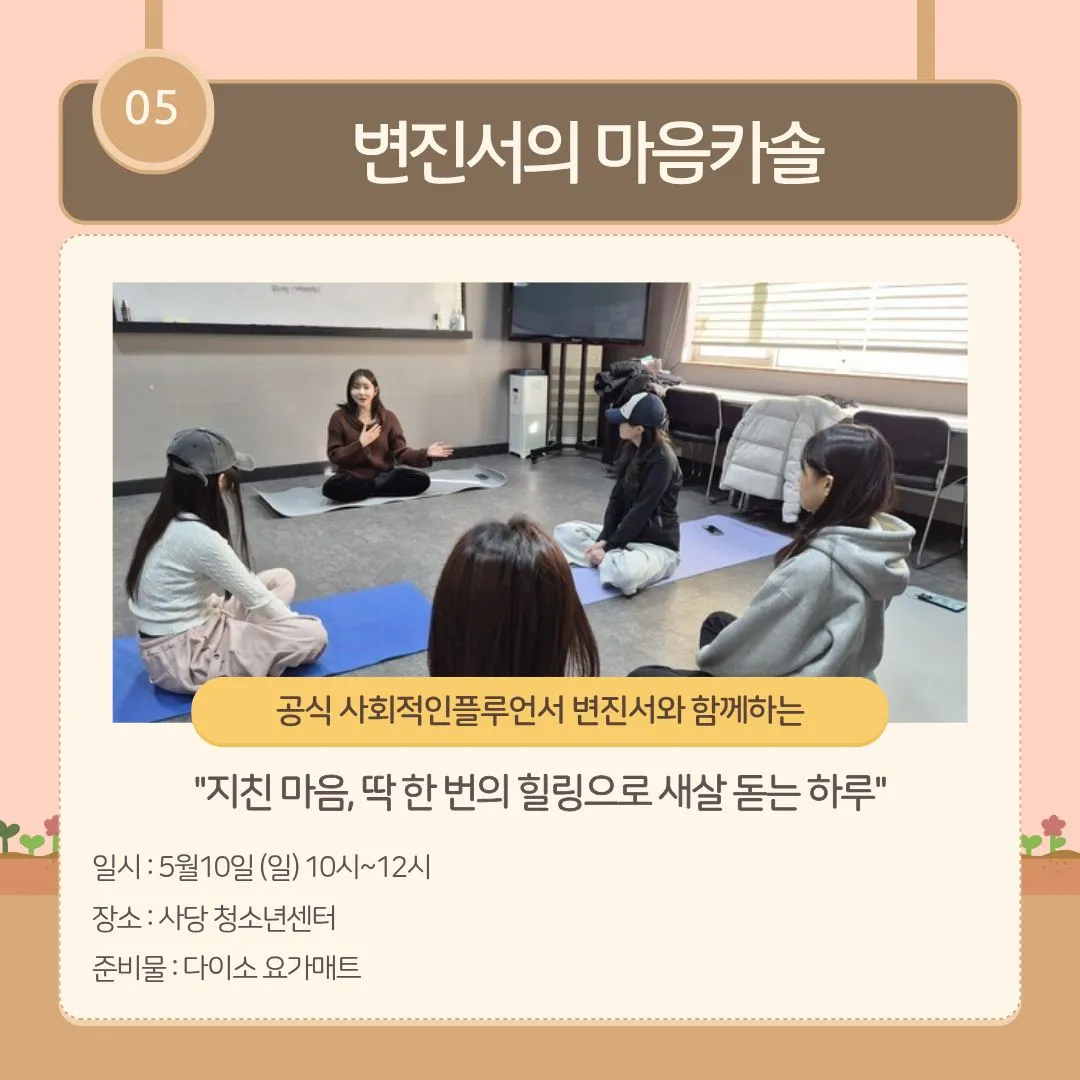 - 5월 활동 카드 이미지 내 일정·내용·대상 등 확인