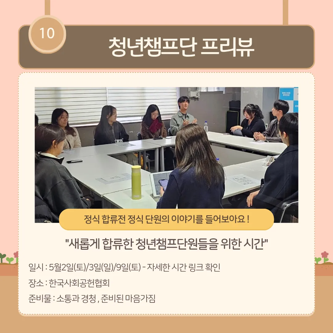 3. 수용인원 : 청년챔프단 5명 / 사회적인플루언서 10명